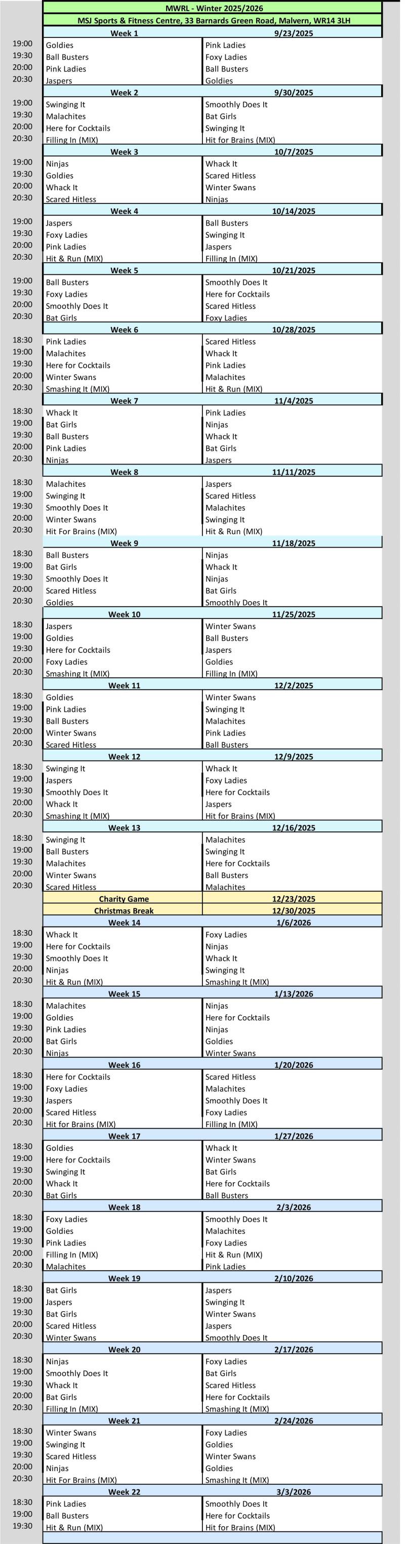 ***Winter Fixtures 2025/26***