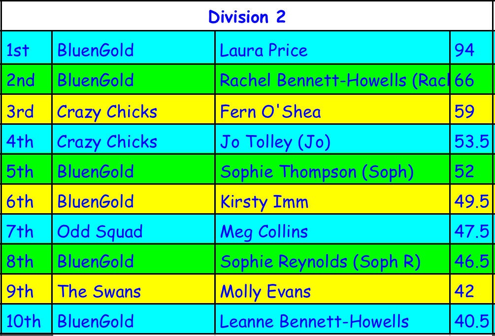 Previous Years Standings